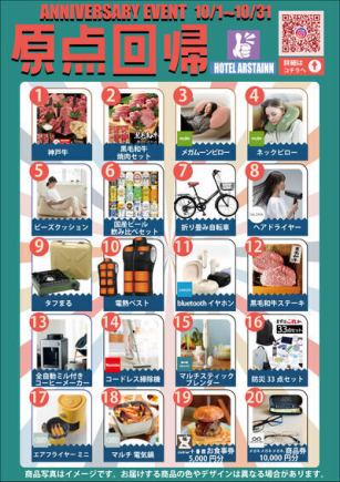 ご利用いただくお客様に感謝を込めて、宿泊の方に抽選で豪華賞品が当たるキャンペーンを開催します。